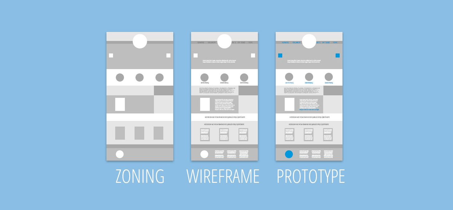 После того как сценарии и потоки согласованы, дизайнер переходит к созданию вайрфреймов — черновых схем интерфейса.