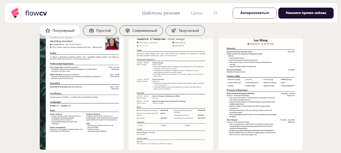 Кому подойдет: тем, кому нужно простое, строгое резюме без лишних функций и рекомендаций.