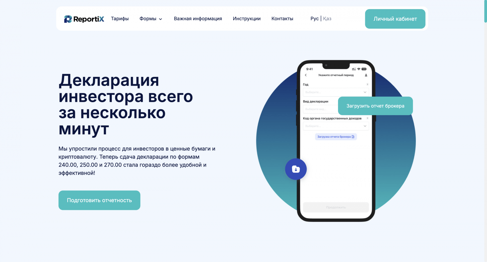 Reportix. Автоматизация отчётности в Казахстане для инвесторов с интеграцией Налоговой Казахстана и ЭЦП.