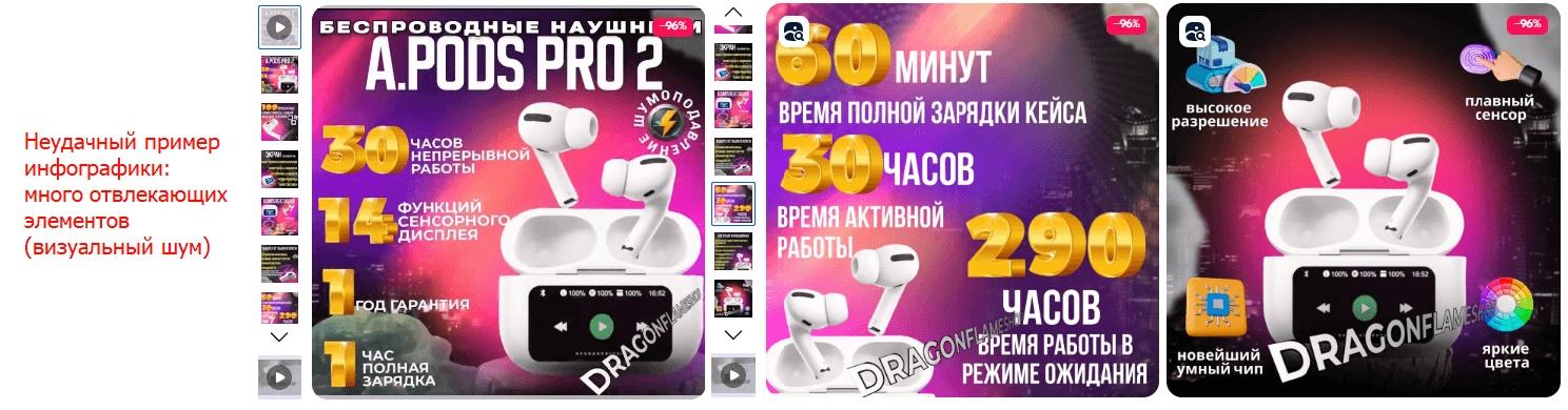 Карточка товара -– это не рекламный баннер, а инструмент, который должен четко, понятно и быстро донести информацию до покупателя. Если перегрузить ее лишними элементами, это может запутать клиента и снизить доверие к вашему товару.