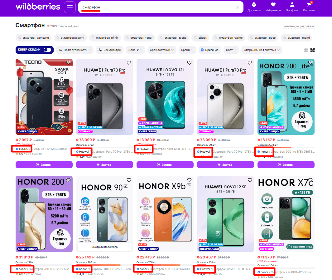 В топе быть хорошо, но это не единственный путь к успеху. Карточки с грамотным описанием, конкурентной ценой и активной рекламной кампанией могут продаваться даже на 20-30 странице поиска. Секрет в том, что покупатели на маркетплейсах очень часто используют фильтры и сортировку по цене, рейтингу, бренду, наличию скидок, важным параметрам товара. Это значит, что ваш продукт может быть замечен даже без топовых позиций, если он отвечает запросу клиента.
