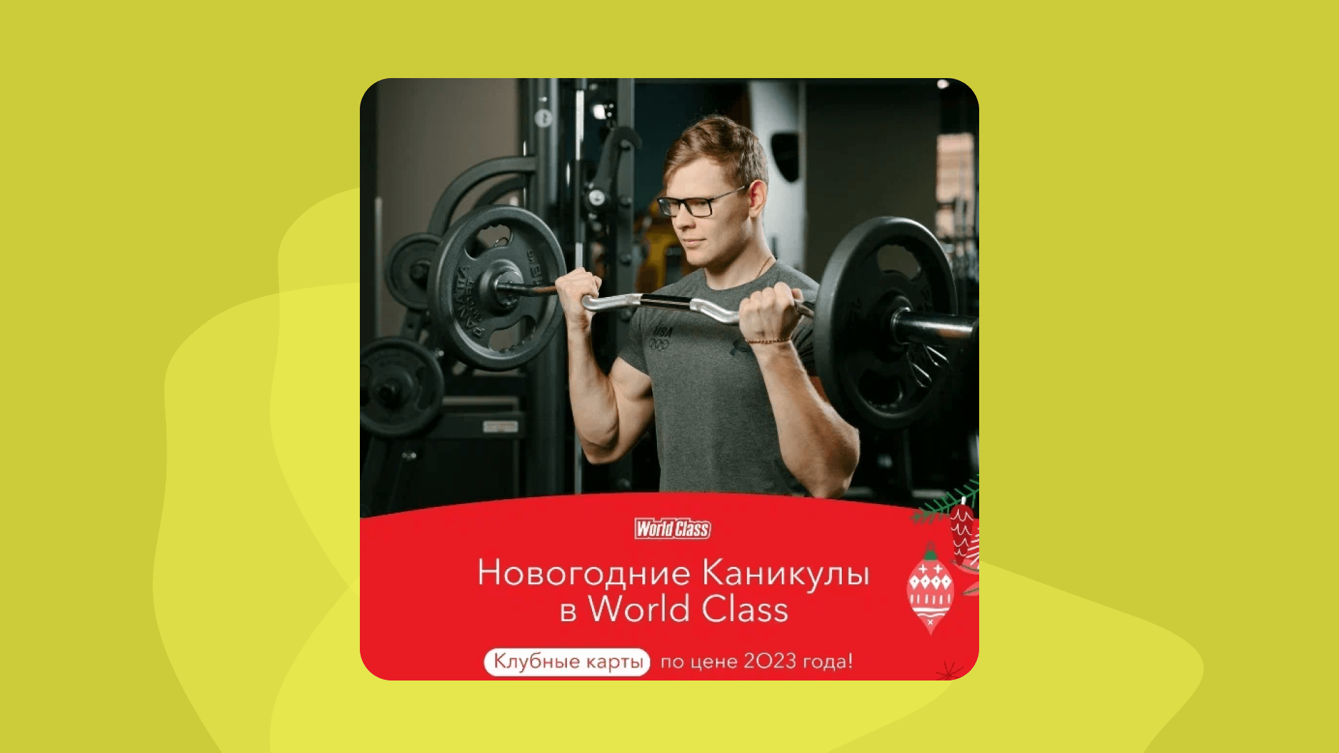 Помните, мы уже писали о силе мероприятий для фитнес-лидгена? Новый год ничем не хуже Черной пятницы — позовите уставших людей на вечеринку, предложите им расслабиться и заняться чем-то приятным. Закройте это форматами: