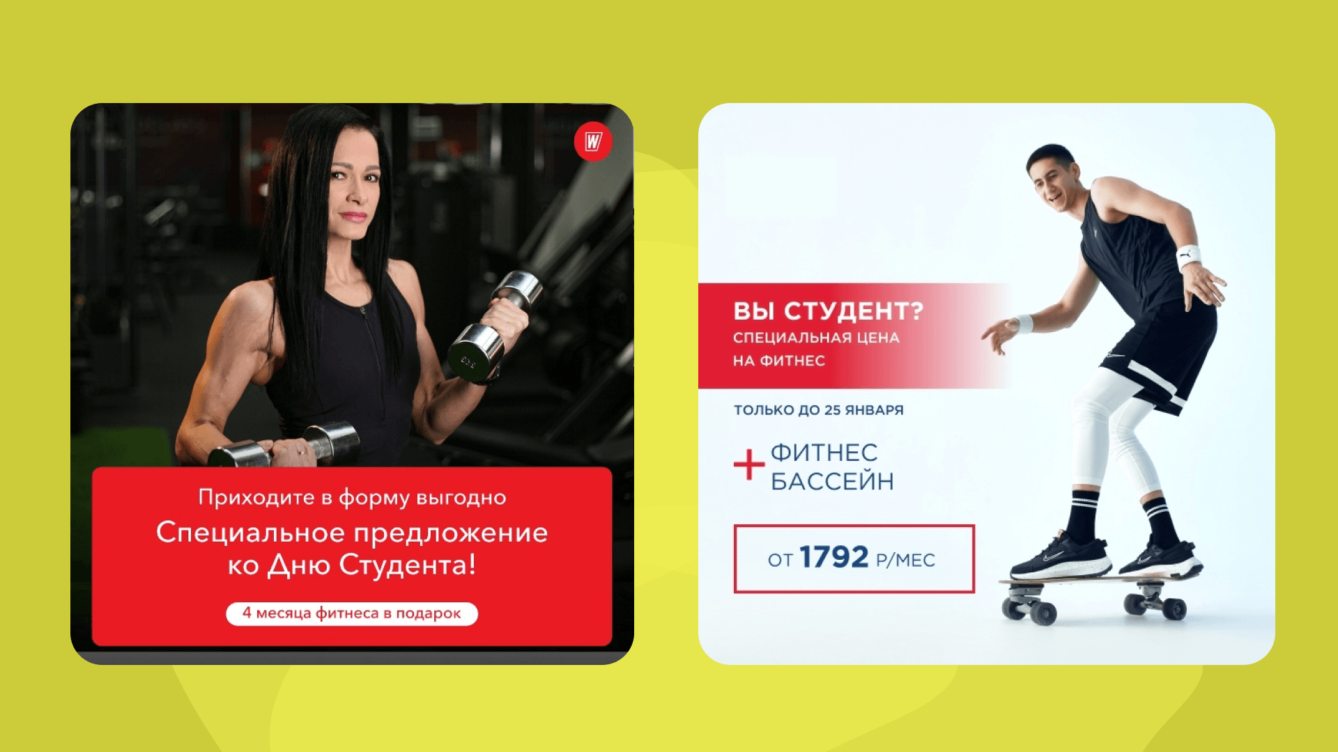 Классика, которая вытаскивает объем лидов каждый сезон. Здесь главное потрудиться над формулировкой: не «3 месяца», а «тренируйся до весны». Подробнее о том, как составлять грамотные офферы, можете почитать в нашей другой статье.