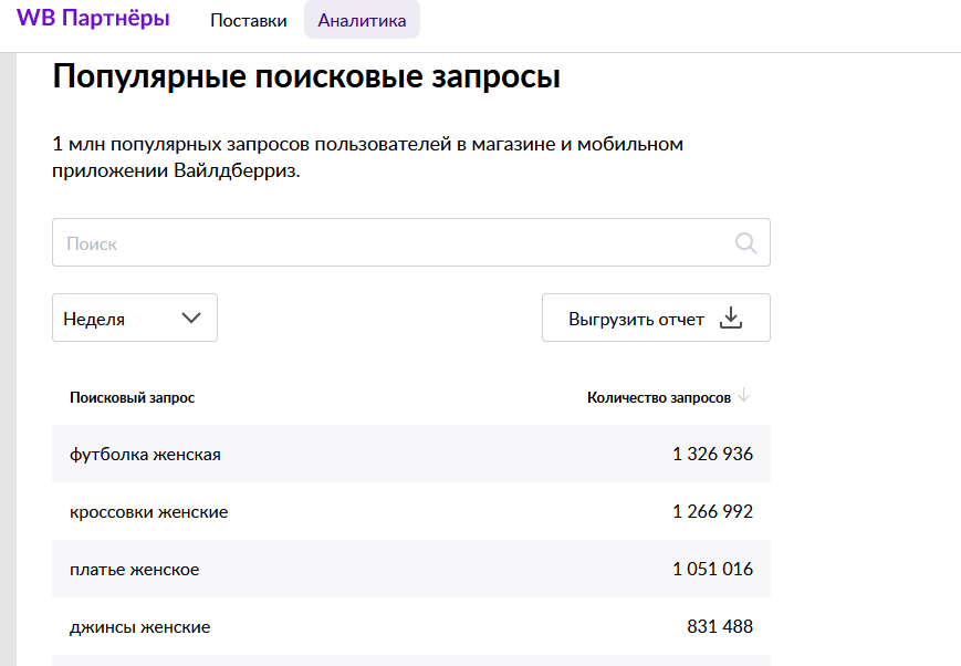Популярные запросы на Wildberries