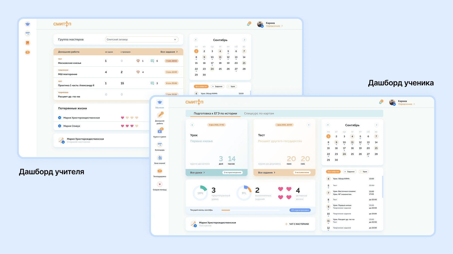 Личные кабинеты преподавателя и ученика на платформе «СМИТАП»