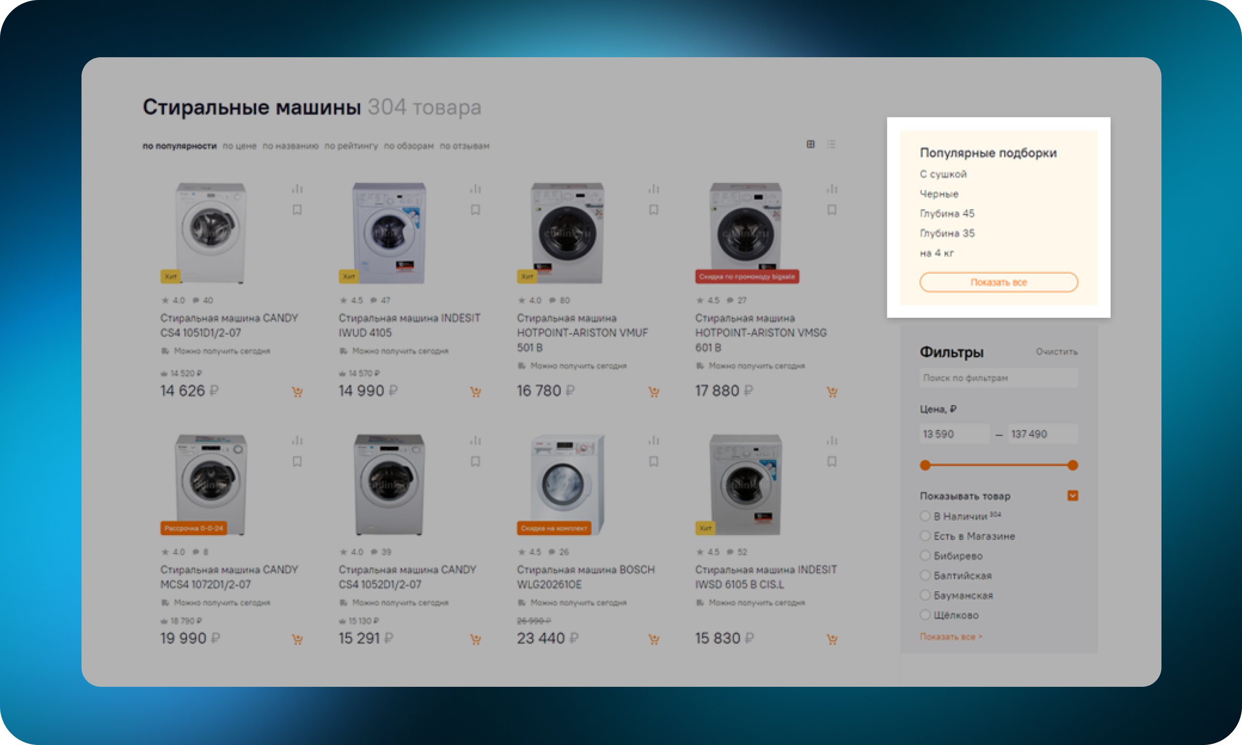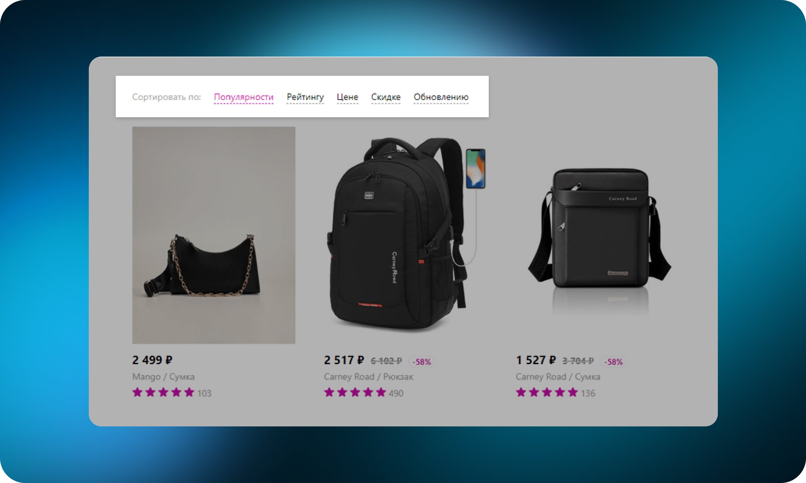 Если фильтры исключают определенные продукты из выборки, то сортировка товаров упорядочивает выдачу по заданному критерию — например, по возрастанию цены, рейтингам пользователей или популярности. Располагается над списком товаров.