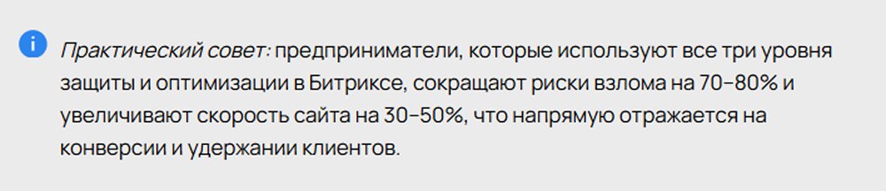 Что можно сделать на Битриксе: обеспечить защиту сайта и высокую скорость работы даже при большой нагрузке, используя встроенные инструменты и настройки платформы.