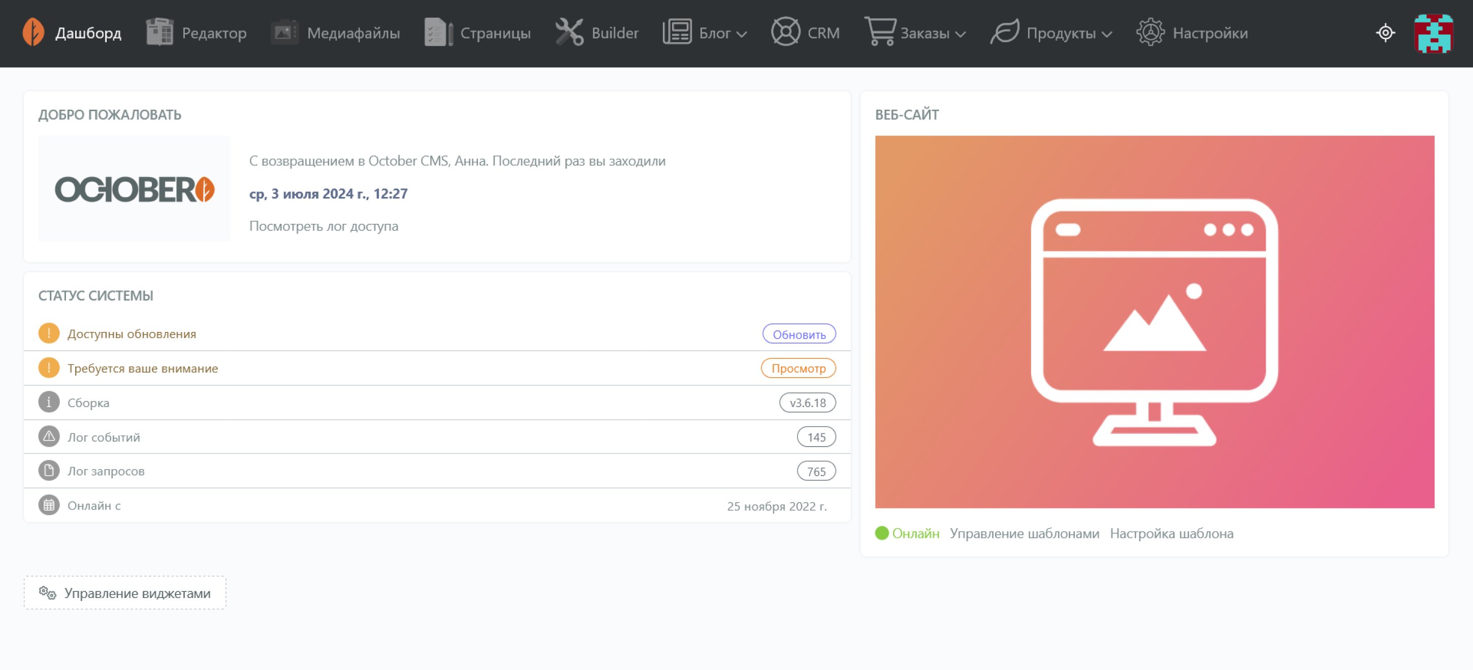 А если говорить о гибкости настроек панели администратора — ситуация другая. С помощью October CMS можно автоматизировать бизнес-процессы: отправку клиенту трек-номера заказа в Telegram, автоматическое изменение статуса посылки и генерацию ссылки на оплату. Для всего этого хватит нажатия одной кнопки.