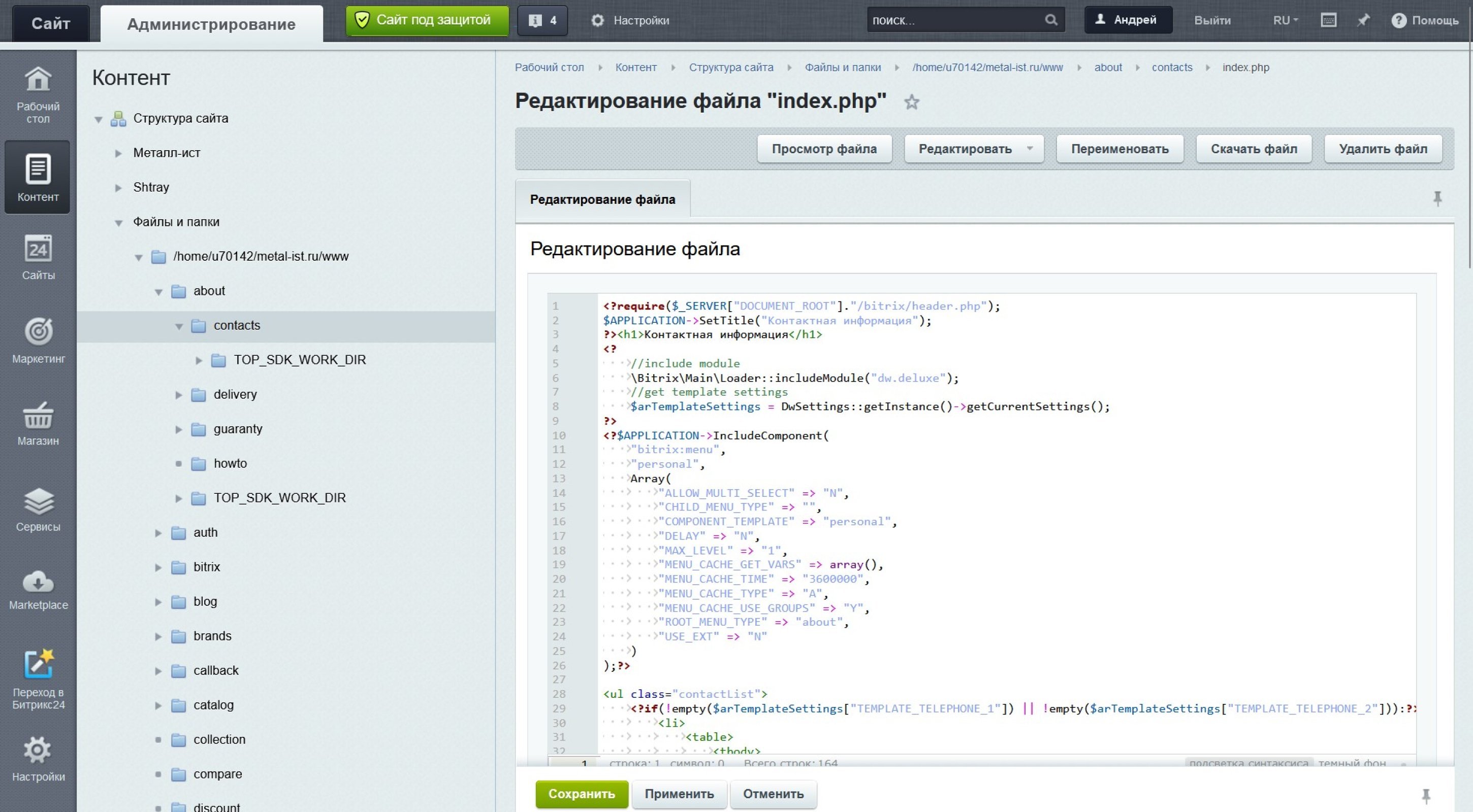 1С-Битрикс — «коробочная» система, которая содержит много готовых решений для бизнеса. Собрать простой корпоративный сайт можно самому, и он даже будет работать.