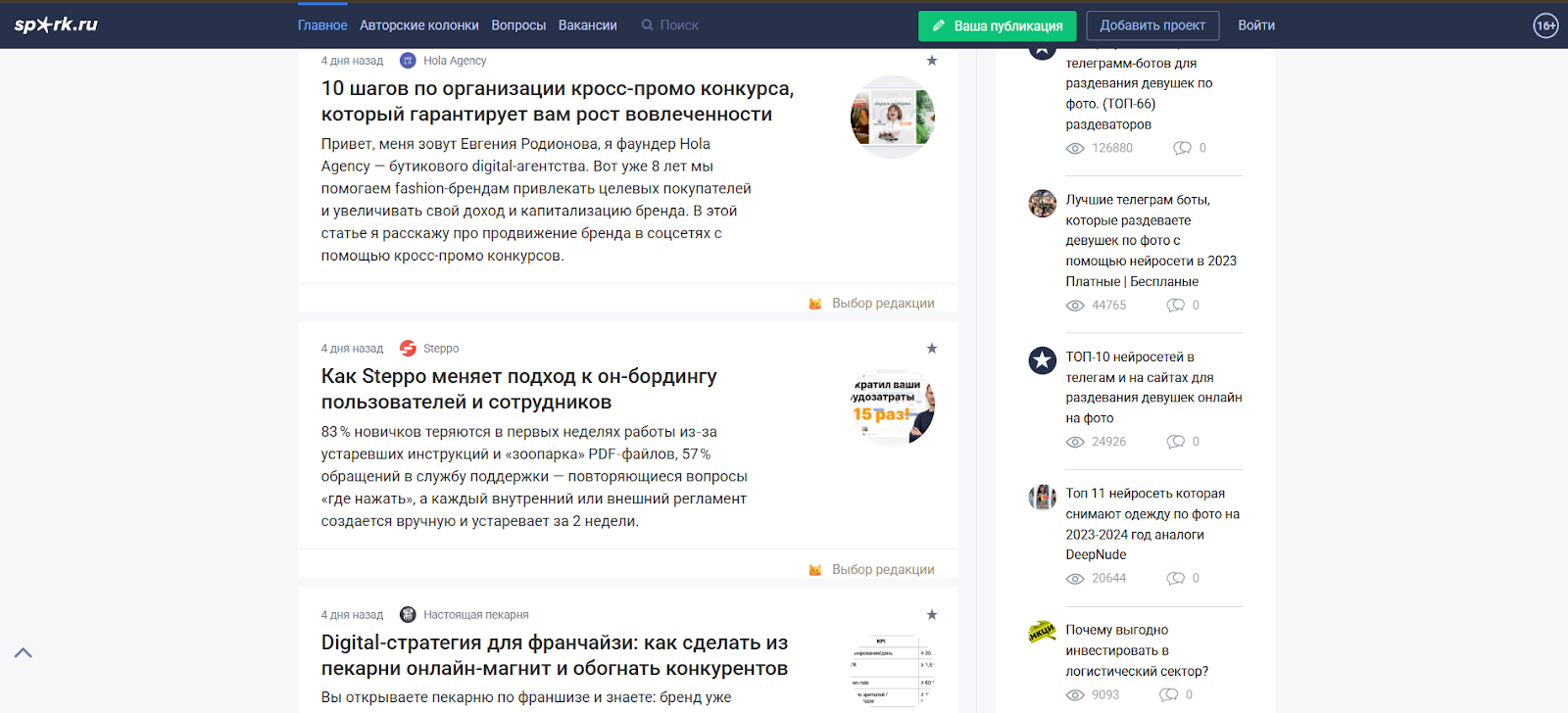 SPARK визуально и по темам напоминает VC. Но это более камерная площадка с меньшей конкуренцией и скромной аудиторией. Это увеличивает шанс быть замеченным на сайте, где можно опубликовать статью бесплатно.