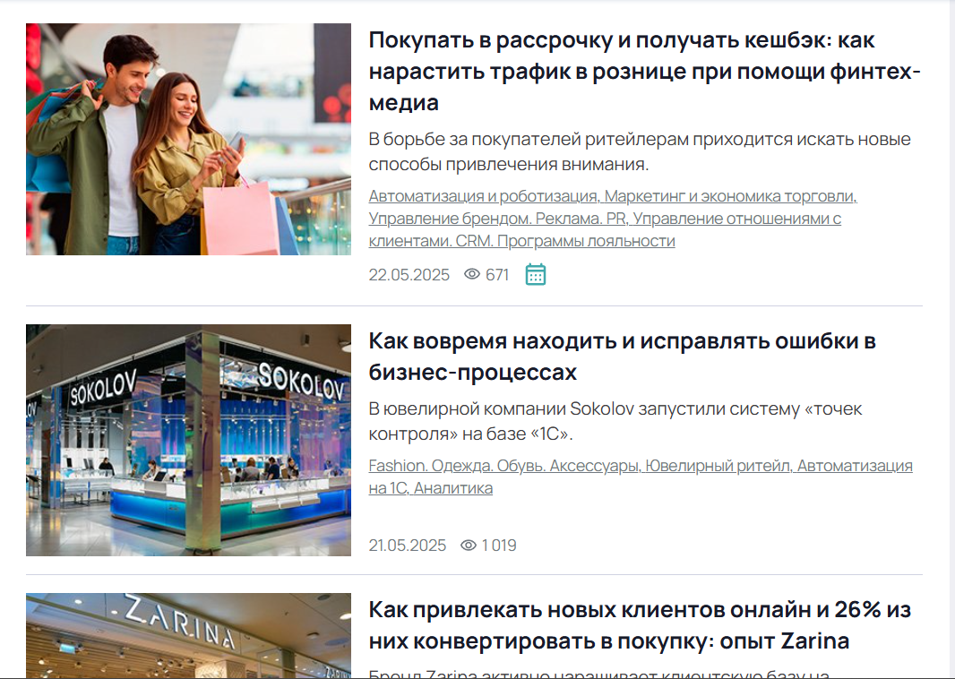 Retail — это B2B-портал о розничной торговле и сопутствующих услугах. Аудитория — ритейлеры, производители, дистрибьюторы. Тематика строго профессиональная.