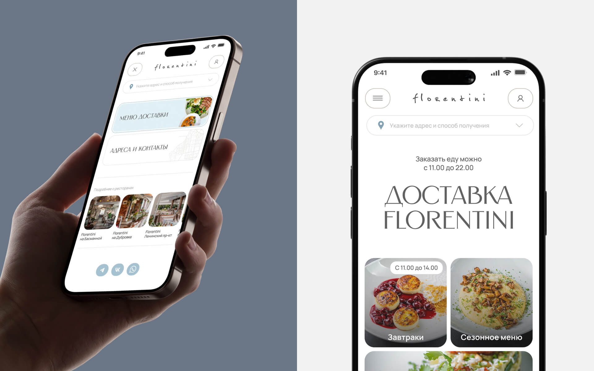Florentini давно хотели активно развивать доставку, но старый сайт был для этого неприспособлен: неудобная навигация, устаревший визуал, путаница в основном меню ресторанов. И совсем не френдли к мобильным телефонам.