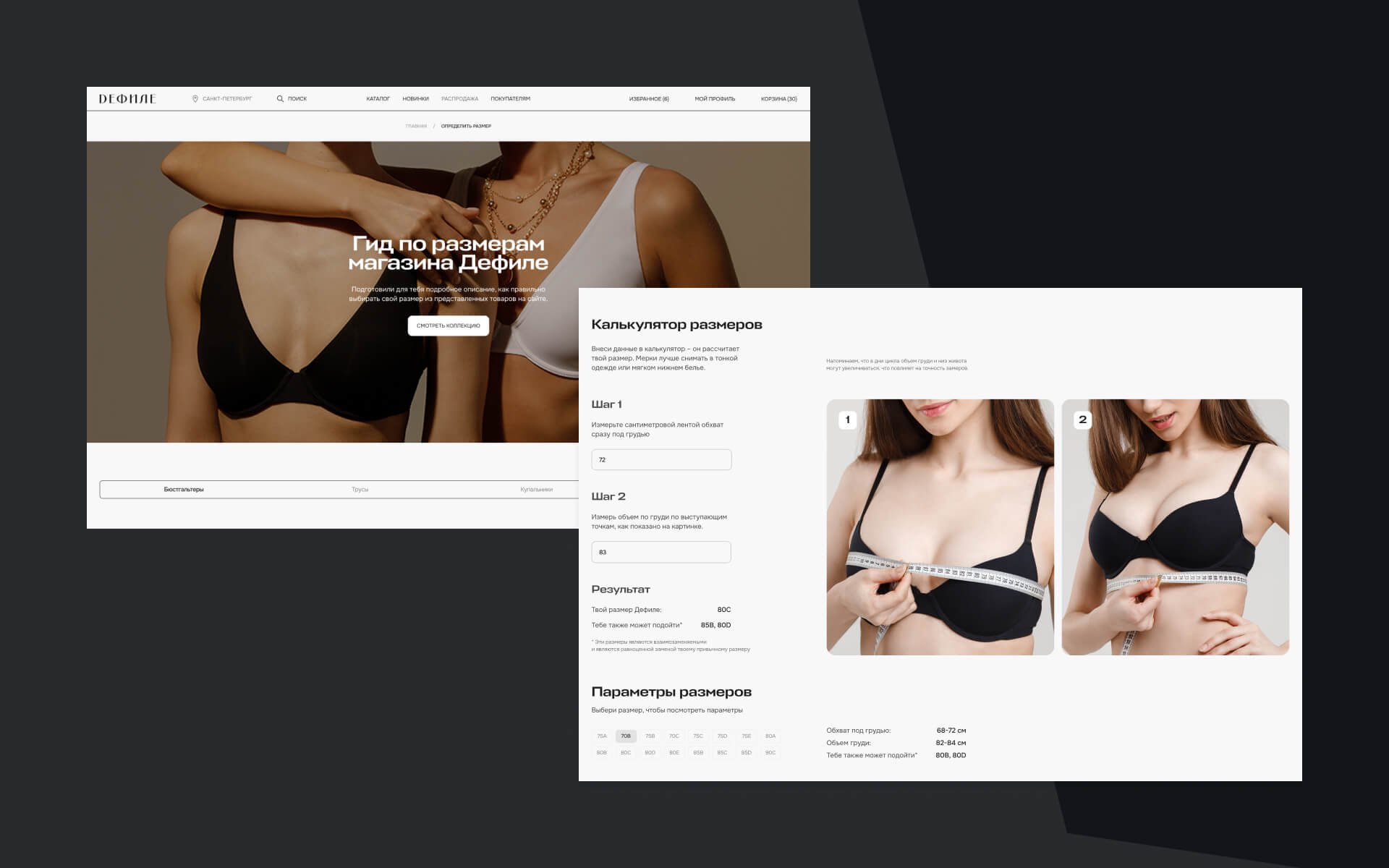 Defile — это федеральный ритейлер женского белья, работающий уже около 20 лет. Магазины бренда открыты в 50+ городах РФ и активная экспанисия продолжается. Компания сама занимается дизайном и производством своих продуктов.
