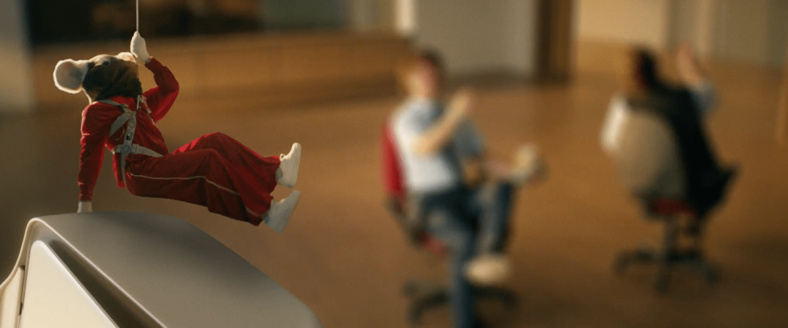 Первый ролик для кампании в стиле шпионского кино. В ролях не Том Круз, а Том Крыс. Он в большей степени мышь, но крысёнок по папиной линии. Иначе как он обчистил весь офис и оставил сотрудникам только два рабочих кресла?