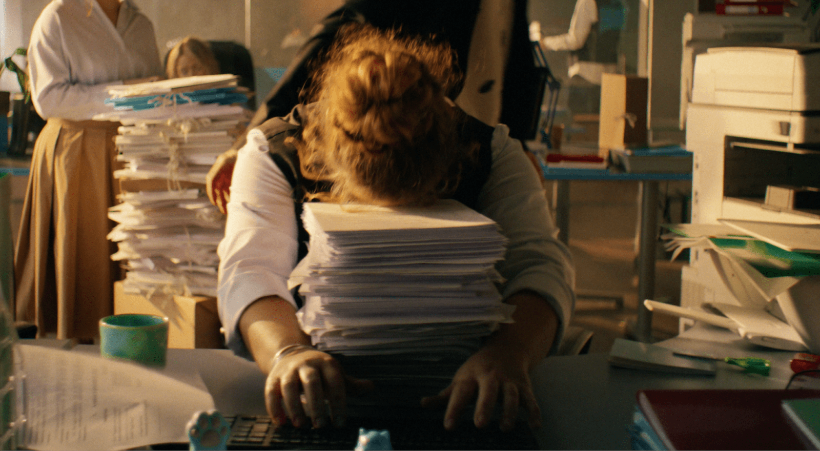 Например, в ролике с Мышонком сотрудница проставляет «печати» собственным лицом.