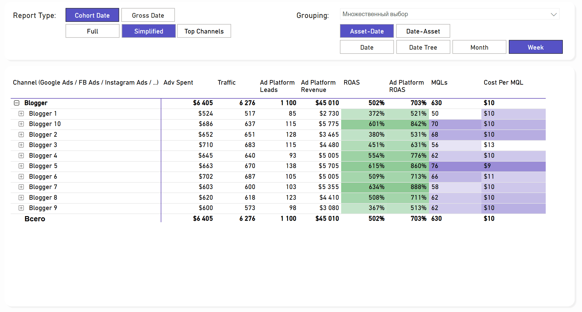За сквозной аналитикой пришел бренд витаминов, который продвигает продукт в основном через блогеров. Когда компания собирала данные и сводила отчеты вручную, сотрудники часто ошибались и делали неправильные выводы о том, какая реклама приносит прибыль, а какая не окупается.