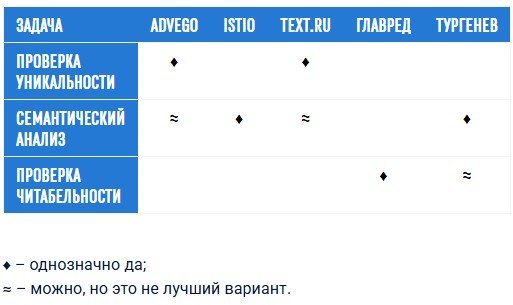 Мы предлагаем вам всего пять. С которыми работаем сами, и которые действительно помогают создавать качественный текстовый контент: Advego.com, Istio.com*, Text.ru, Главред, Тургенев**. Проверено!