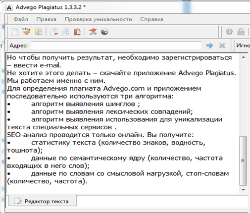 Для определения плагиата Advego.com и приложением последовательно используются три алгоритма: