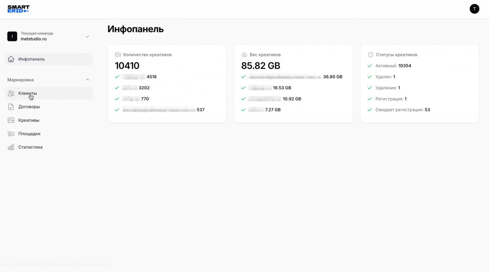 С каждым годом требования к маркировке digital рекламы становятся все более жесткими. Для компаний, ведущих масштабные digital-кампании, важно контролировать маркировку рекламы и передавать статистику в ОРД. Здесь на помощь приходит SmartErid — SaaS-решение, которое полностью автоматизирует процесс. Сервис подключается к инфраструктуре рекламодателя через API, собирает данные о креативах и документах, взаимодействует с ОРД для получения токенов и предоставляет клиенту консолидированную отчетность. По сути, SmartErid превращается в единый операционный центр по управлению маркировкой, экономя время команды и снижая риск ошибок.