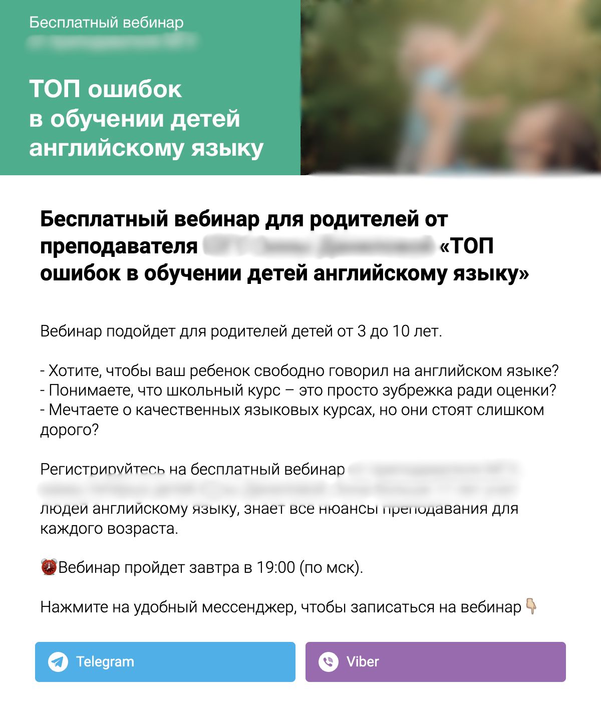 2. По ссылке попадает на мини-лендинг. Пример: