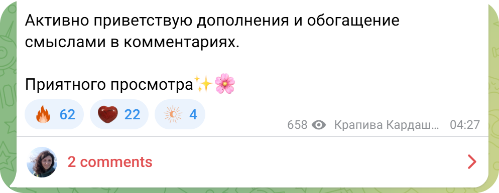 Начнем с закрепленного сообщения, или закрепа. Это первый полноформатный пост-знакомство, который увидит новый подписчик. Цель закрепа — удержать внимание, вовлечь аудиторию и объяснить, почему будет полезно остаться в канале.