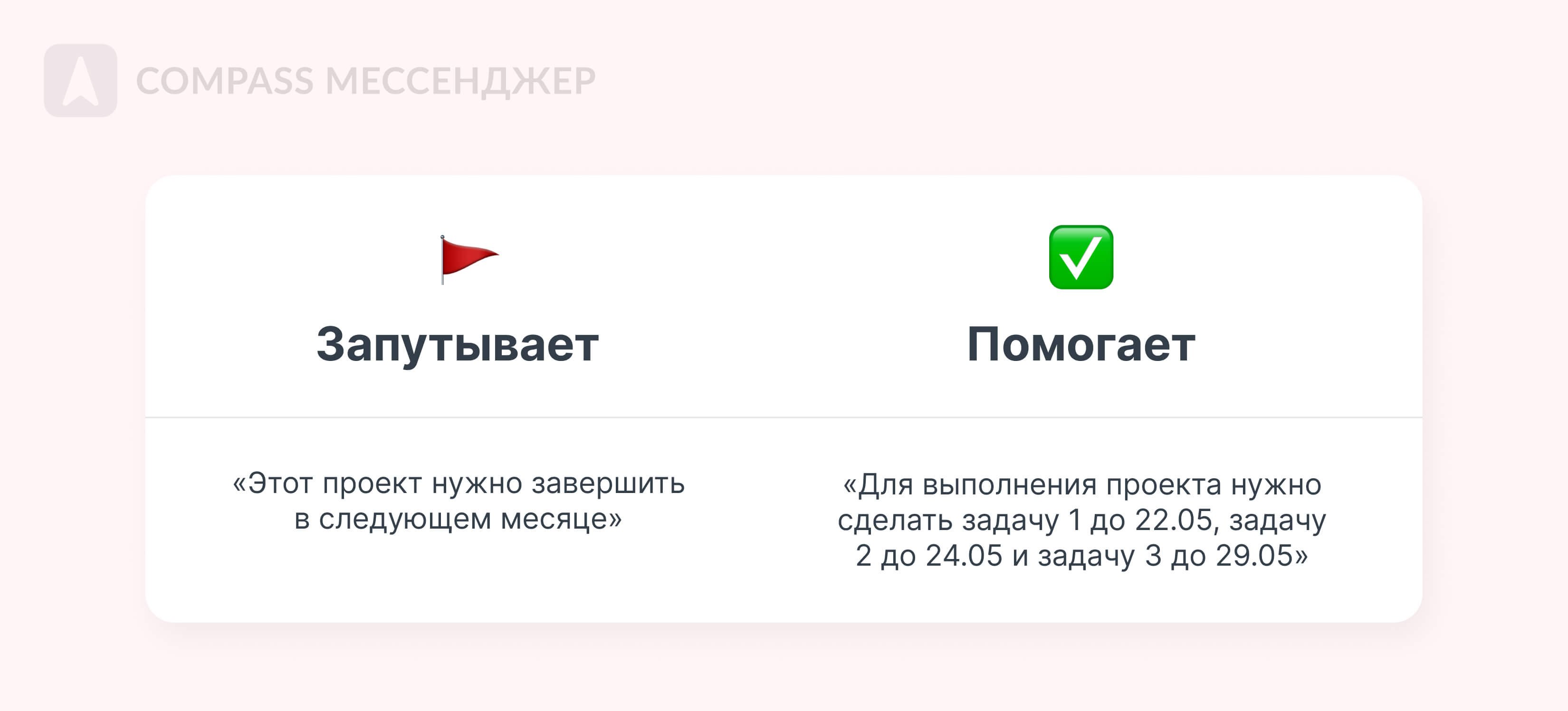 😇 В здоровой команде объёмные задачи всегда дробят на контролируемые этапы. Каждому этапу — свой мини-дедлайн, чтобы команда двигалась поступательно и могла вовремя корректировать траекторию работы.
