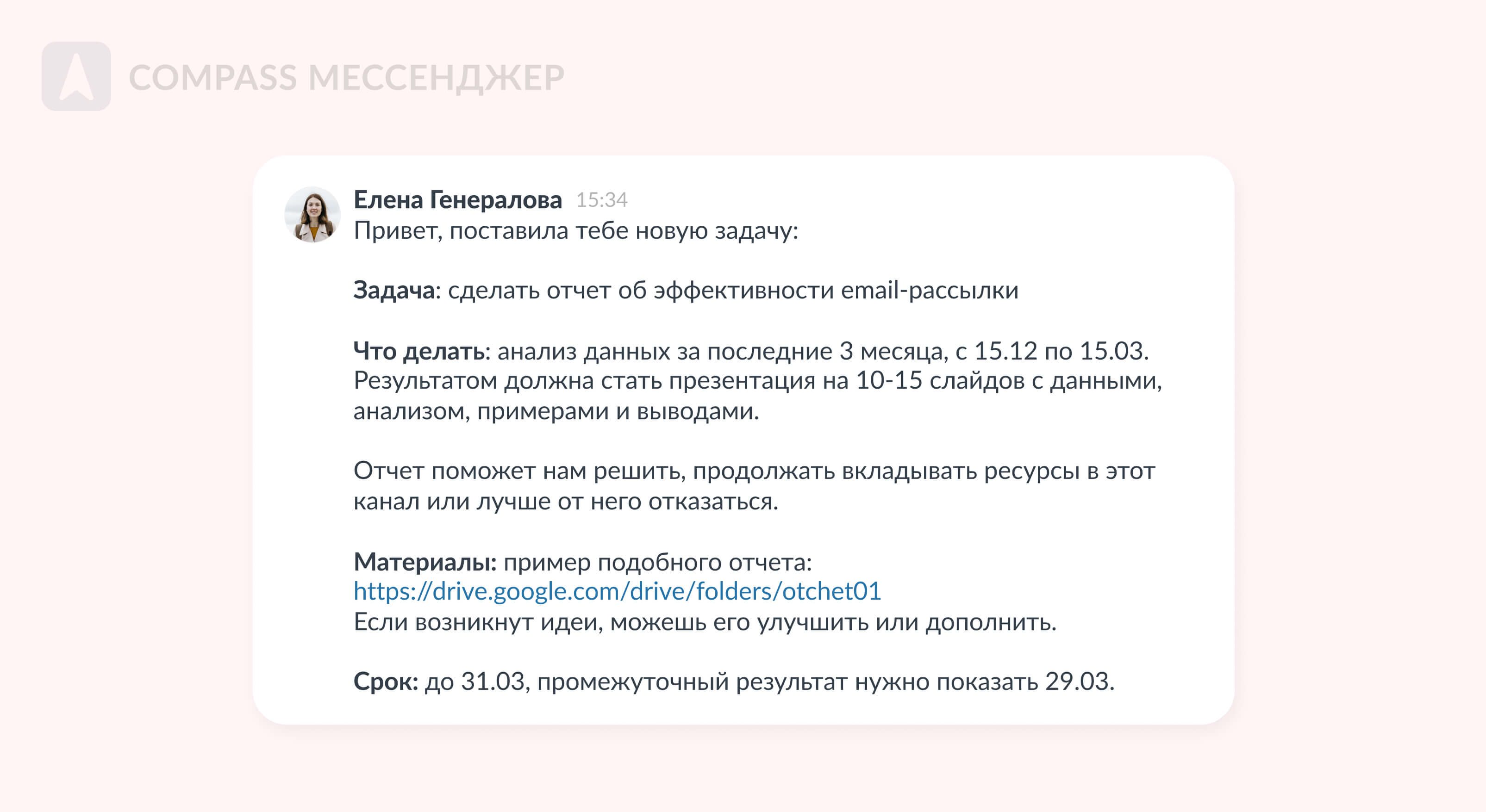 😇 В здоровой команде руководитель делится всеми материалами и прикладывает ссылки прямо к задаче. Это экономит нервы и ускоряет выполнение.