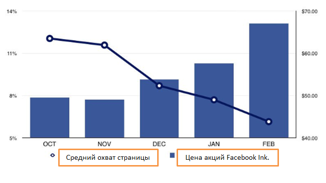Также, чтобы привлечь пользователей и заставить их быть активными, участвовать в продвижении бренда, требуется платная реклама. Поскольку цена акций Facebook выросла, средний органический охват бизнес-страниц уменьшился.