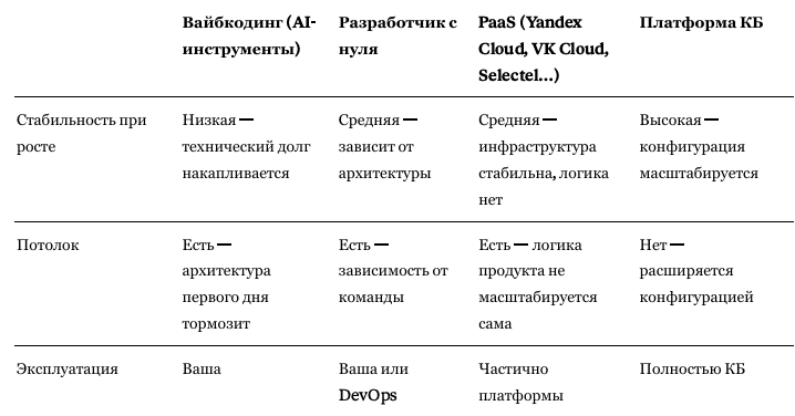 PaaS решает проблему эксплуатации, но не решает проблему продукта. А значит, вы всё равно возвращаетесь к тому же: кто напишет логику? Кто будет её поддерживать? Что происходит, когда разработчик уходит?