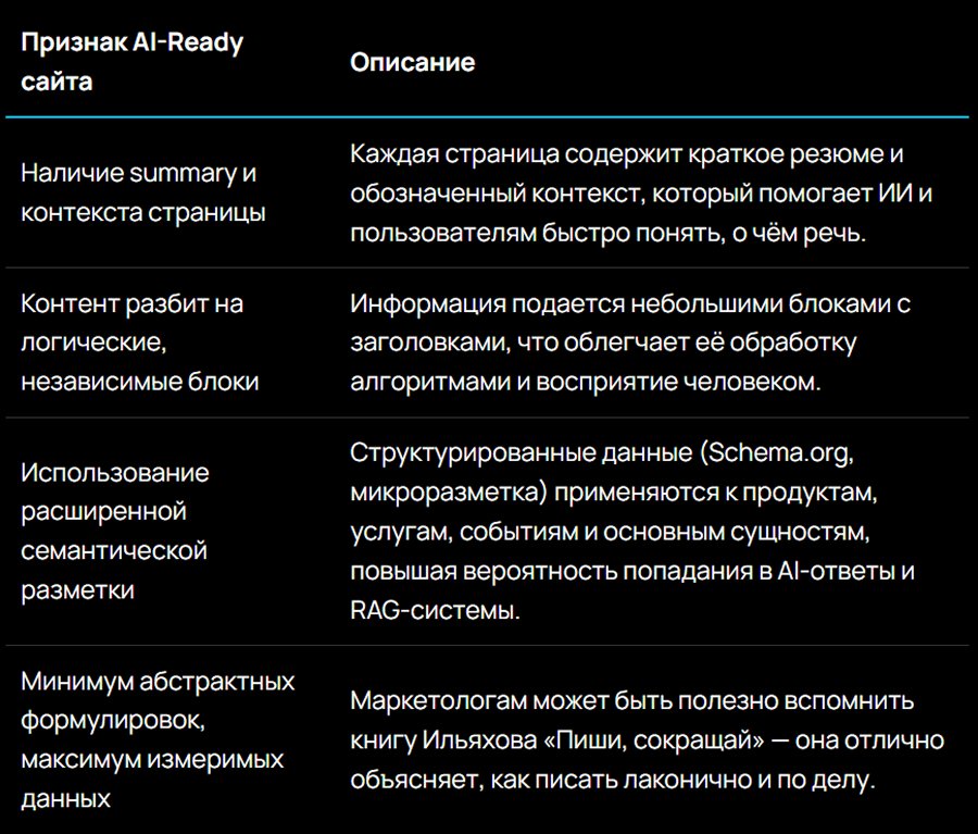 AI-ready ≠ «сайт, написанный ИИ». Это сайт, данные и контент которого: