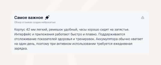 Но здесь важно, КАК встроили эту фичу: если саммари честное, объёмное и адаптировано к потребностям разных товаров (и не напоминает рекламный промотекст) — людям действительно будет легче принимать решения здесь и сейчас.