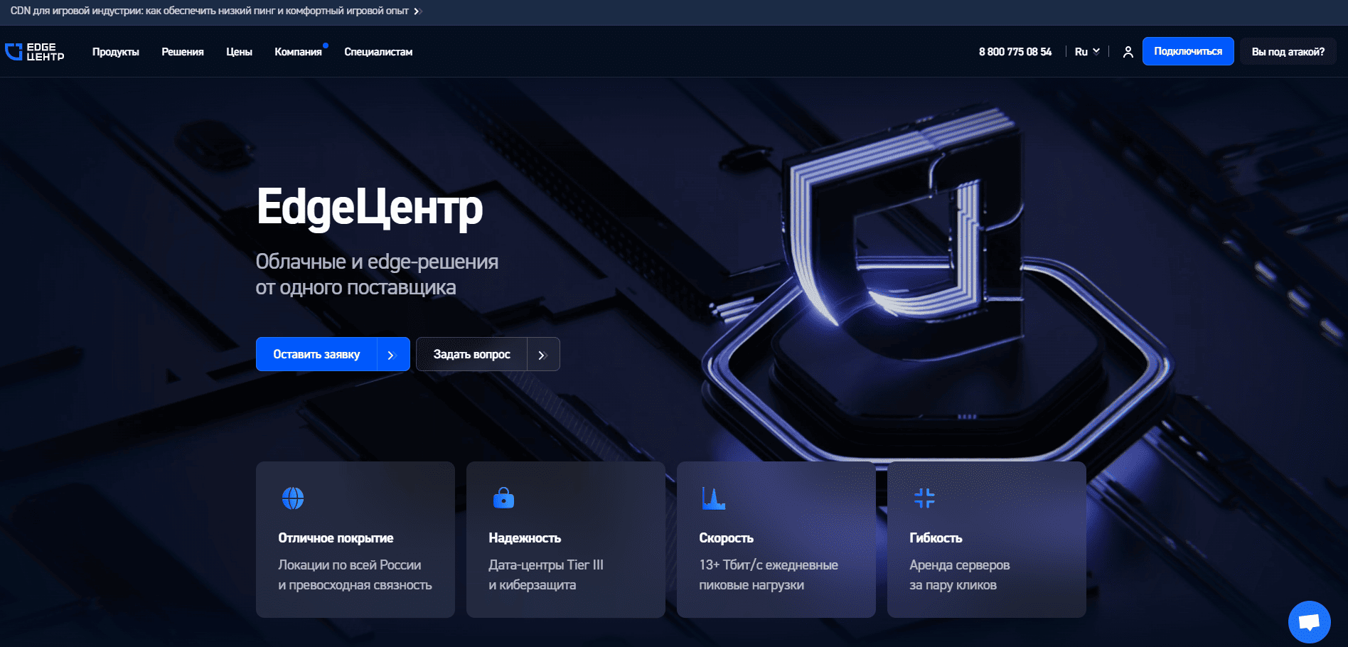 EdgeЦентр — российская компания, которая предоставляет масштабируемые облачные и edge-решения для бизнеса различных сфер.