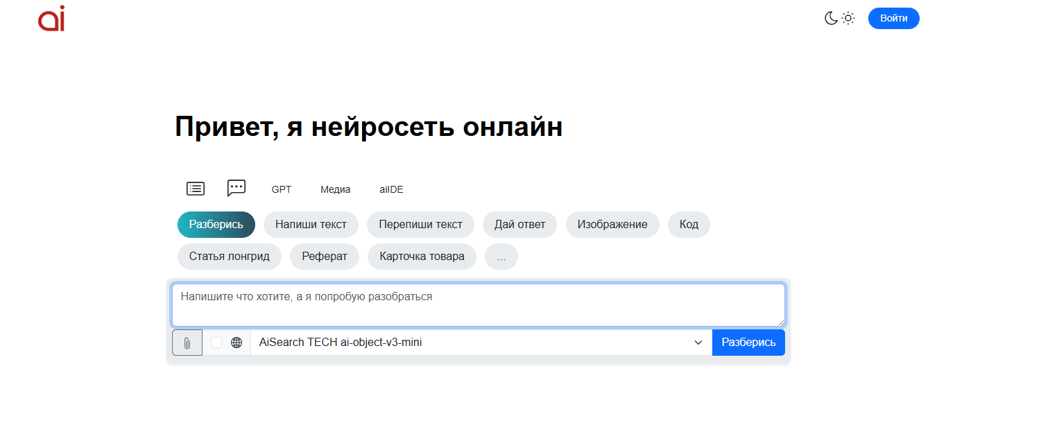 • Много готовых режимов под задачи (тексты/SEO/код и др.).