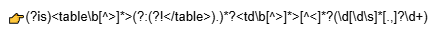 Данный шаблон берет первое число именно из td внутри конкретной table, не беря в учет числа, которые находятся внутри стилей.