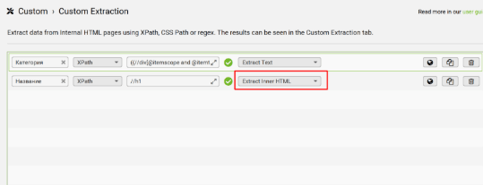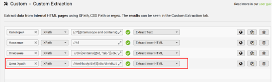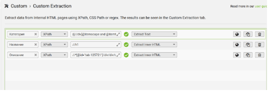 Все эти данные мы автоматически достанем с сайта. Для начала откройте Screaming Frog (SF) → Configuration → Custom → Custom Extraction (далее мы будем вставлять туда нужные XPath-запросы).