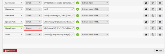 Для этого в поле выбора режима извлечения данных выберите “Regex” и вставьте шаблон ниже