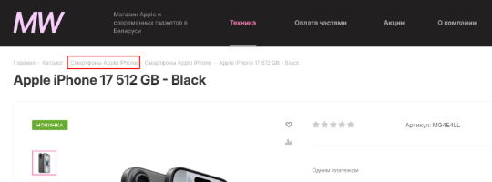 Название категории проще всего взять из предпоследней хлебной крошки, так как именно она чаще всего указывает на раздел товара или услуги.
