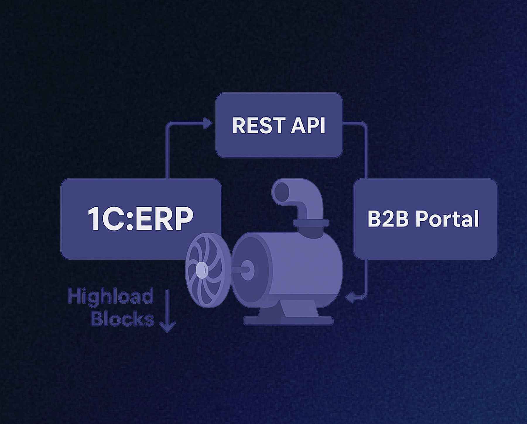 B2B-портал отличается от обычного интернет-магазина объемом и сложностью данных. В оптовом бизнесе (автозапчасти, электротехника, стройматериалы) номенклатура может достигать 500 000 SKU, а количество типов цен - сотни. Стандартные модули обмена часто не справляются с такой нагрузкой, вызывая зависание учетной системы.