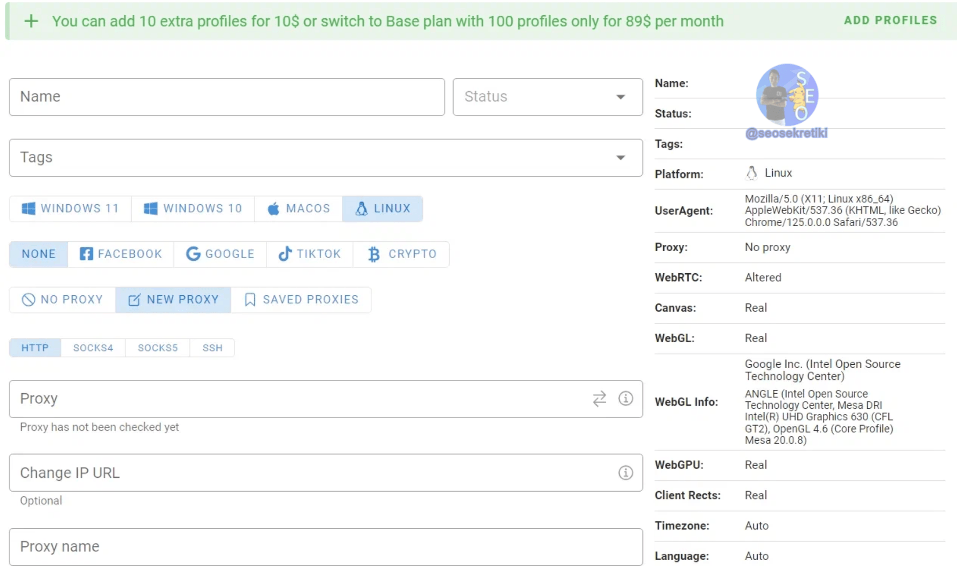 Например, Dolphin позволяет использовать до 10 профилей бесплатно. Создаете профиль, задаете настройки и списком прокси и запускаете в работу. Можно работать из одного окна по большому количеству профилей сразу на разных устройствах (фингерпринты). Импортируем готовые куки в онлайне и все готово для работы. Тесты отпечатков проходят проверку нормально.