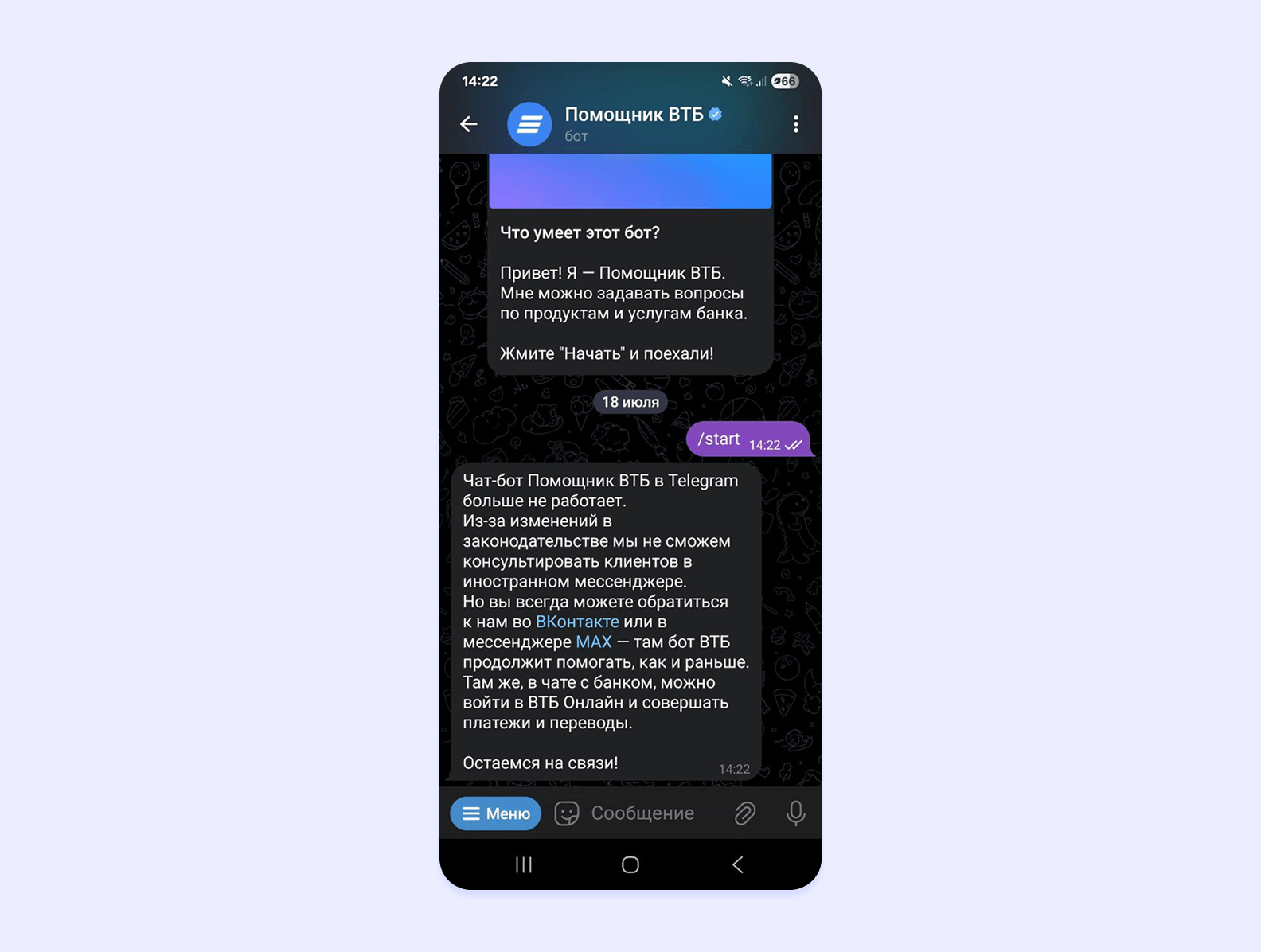 Так, ВТБ и Промсвязьбанк официально перевели свои чат-боты из Telegram в ВК и в национальный мессенджер MAX.