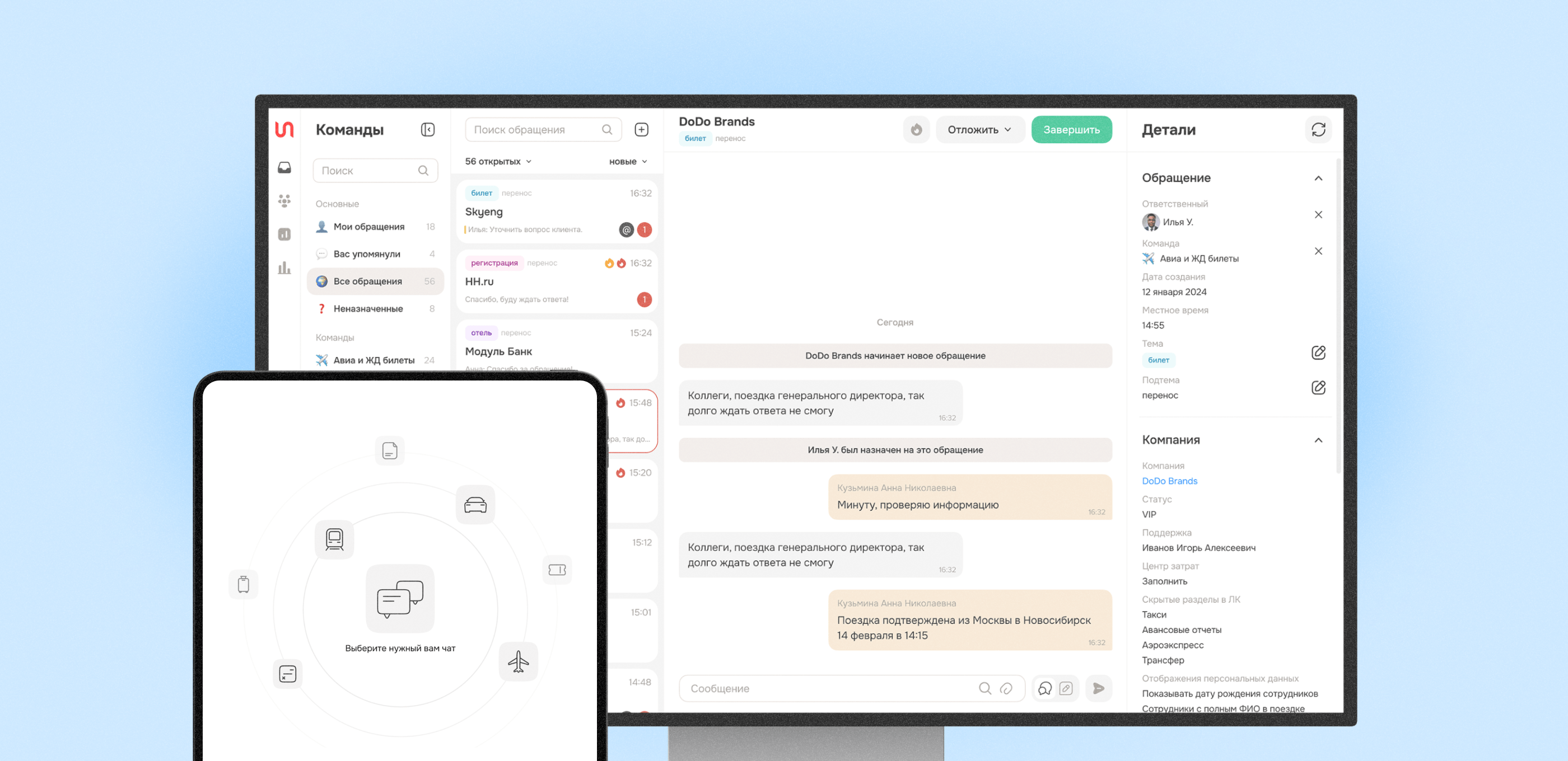 Другой кейс — кастомное helpdesk-решение для компании Smartway Travel Group. За 10 месяцев наша команда разработала аналог Intercom для службы поддержки компании, который выдерживает нагрузку до 550 чатов в час, учитывает все бизнес-процессы и сложную логику.