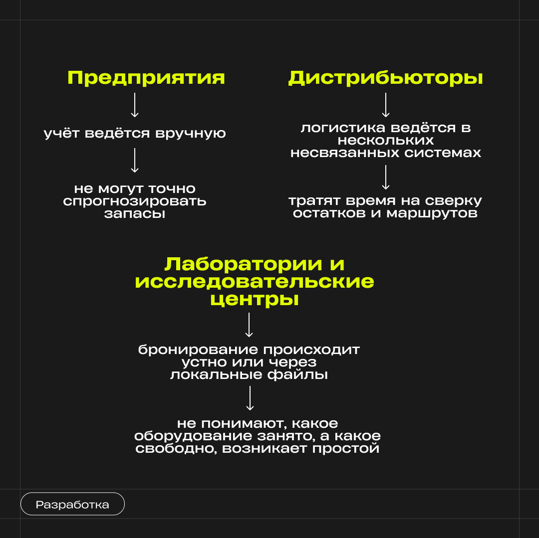 До внедрения системы сотрудники вели учёт оборудования и материалов в Excel, а бронирование осуществлялось устно или через разрозненные файлы. В результате оборудование часто простаивало, а расходники заканчивались неожиданно.