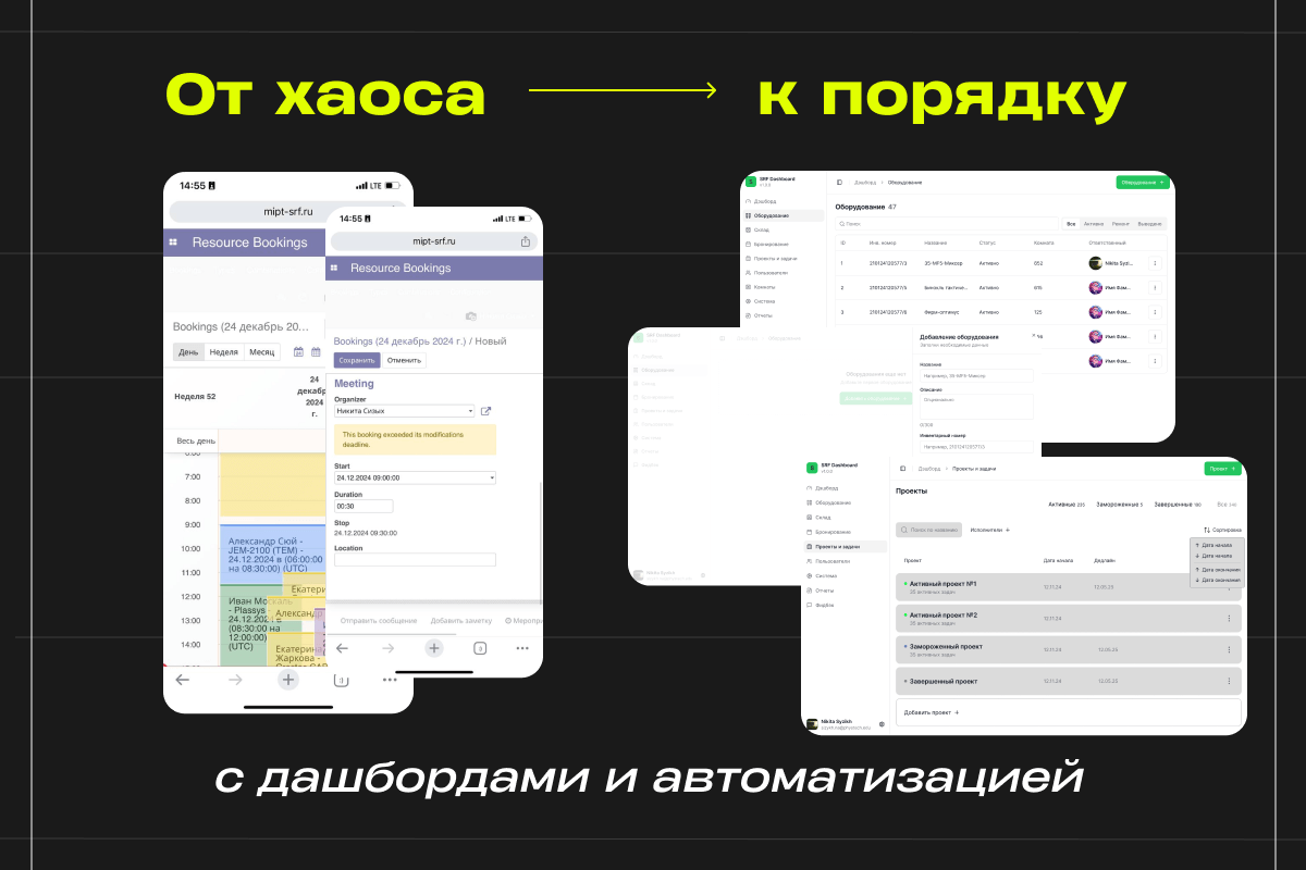 Когда бизнес растёт, хаос накапливается. Оборудование простаивает, потому что его случайно забронировали два человека одновременно. Производство останавливается, потому что расходные материалы закончились, а закупку не успели вовремя оформить.