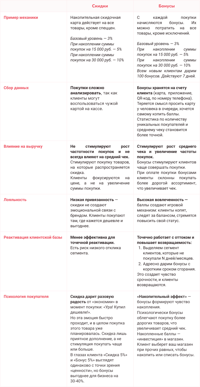 Разумное сочетание создает синергию: скидки привлекают, а бонусы удерживают и развивают отношения. И таким образом разовый покупатель станет лояльным клиентом, что в комплекте обеспечит устойчивый рост.