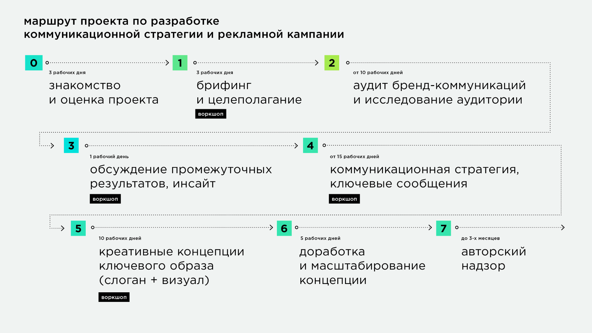 На первых порах жизни (или новой жизни) созданного нами бренда мы помогаем ему обустроиться в сознании клиента, его коллег и его аудитории, проще войти во внутреннюю и окружающую среду. Такой этап адаптации и сопровождения бренда занимает у нас и клиента до полугода. Он включает воркшопы и авторский надзор.