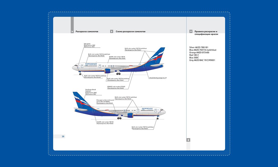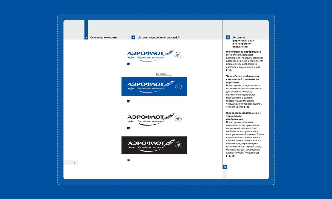 В качестве примера предлагаем вам посмотреть брендбук «Аэрофлота», который есть в открытом доступе.