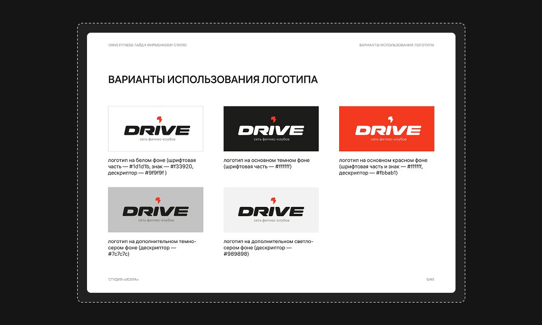 В качестве примера предлагаем посмотреть гайдбук компании Drive, разработанный в нашей студии.