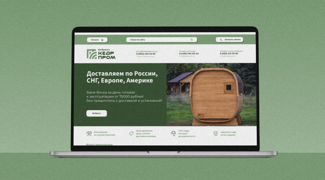 В другой отрасли, но с тем же посылом работает компания «КедрПром». Это производитель кедровых бань-бочек и других изделий из настоящего сибирского кедра.