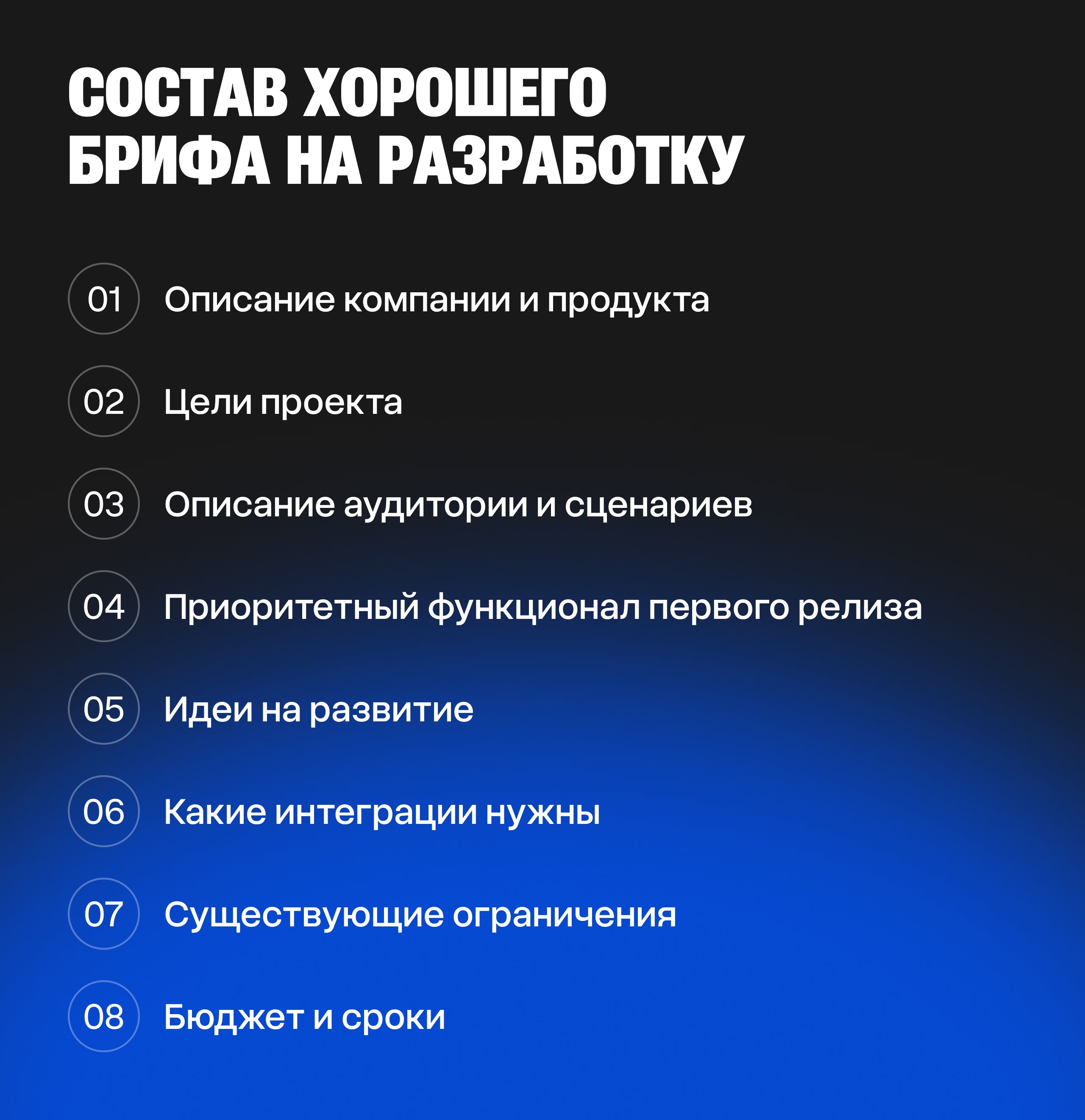 С такими вводными разговор сразу становится предметным. Это уже не «прощупывание почвы», а рабочий диалог, который легко превратить в нормальный бриф на разработку сайта или приложения.