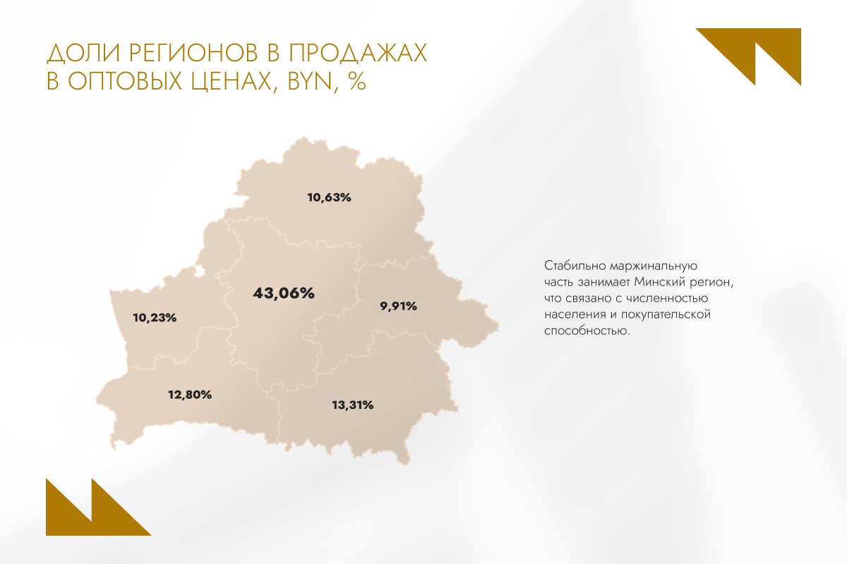 По региональной структуре продаж лидирует Минский регион – это объясняется высокой численностью населения и его покупательской способностью. Среди ключевых игроков рынка выделяются: СООО «Лекфарм», ОАО «Борисовский ЗМП», РУП «Белмедпрепараты», KRKA, GmbH Sandoz.